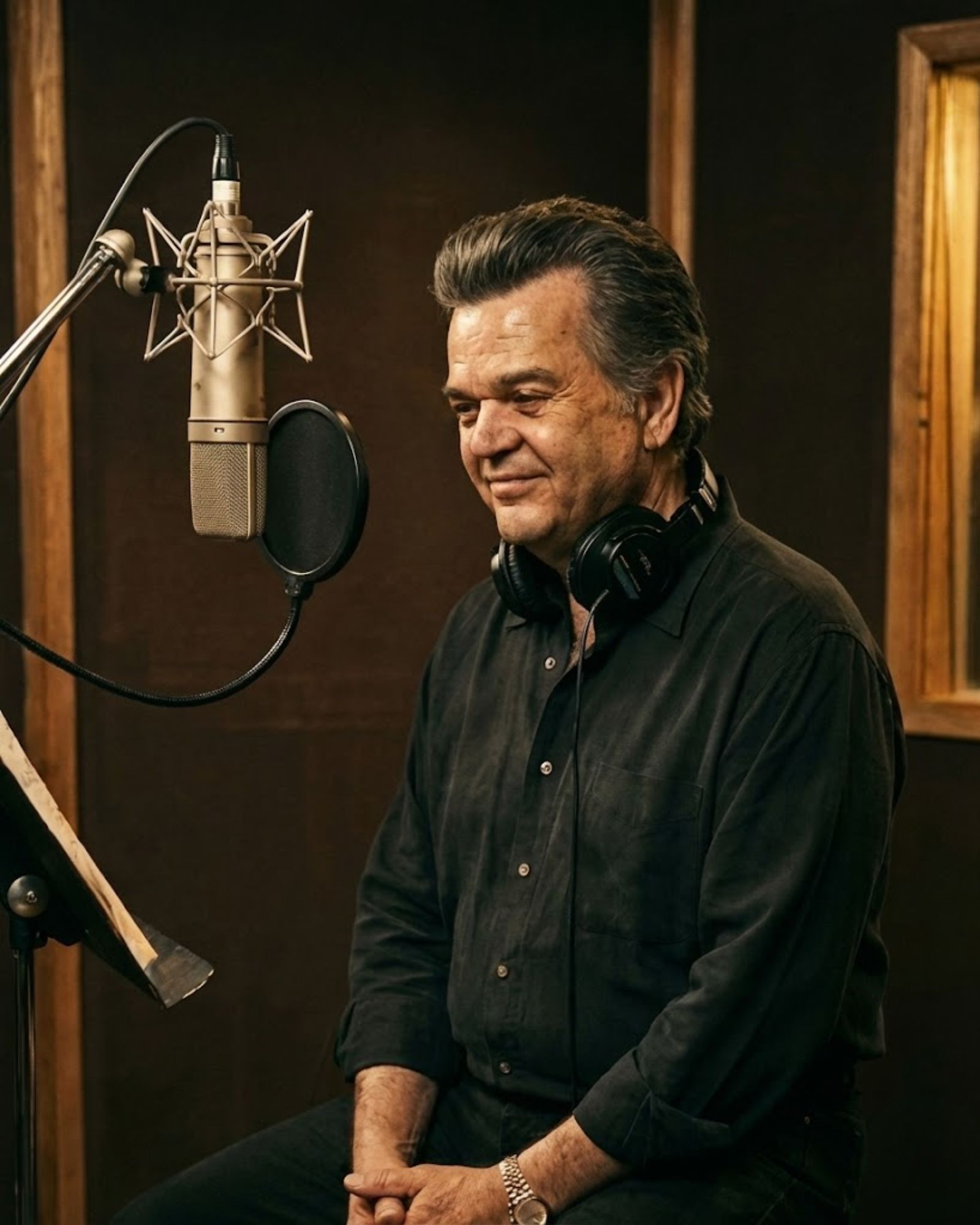 Just soft studio lamps, a familiar microphone, and a man who had spent decades telling other people’s stories through his voice.