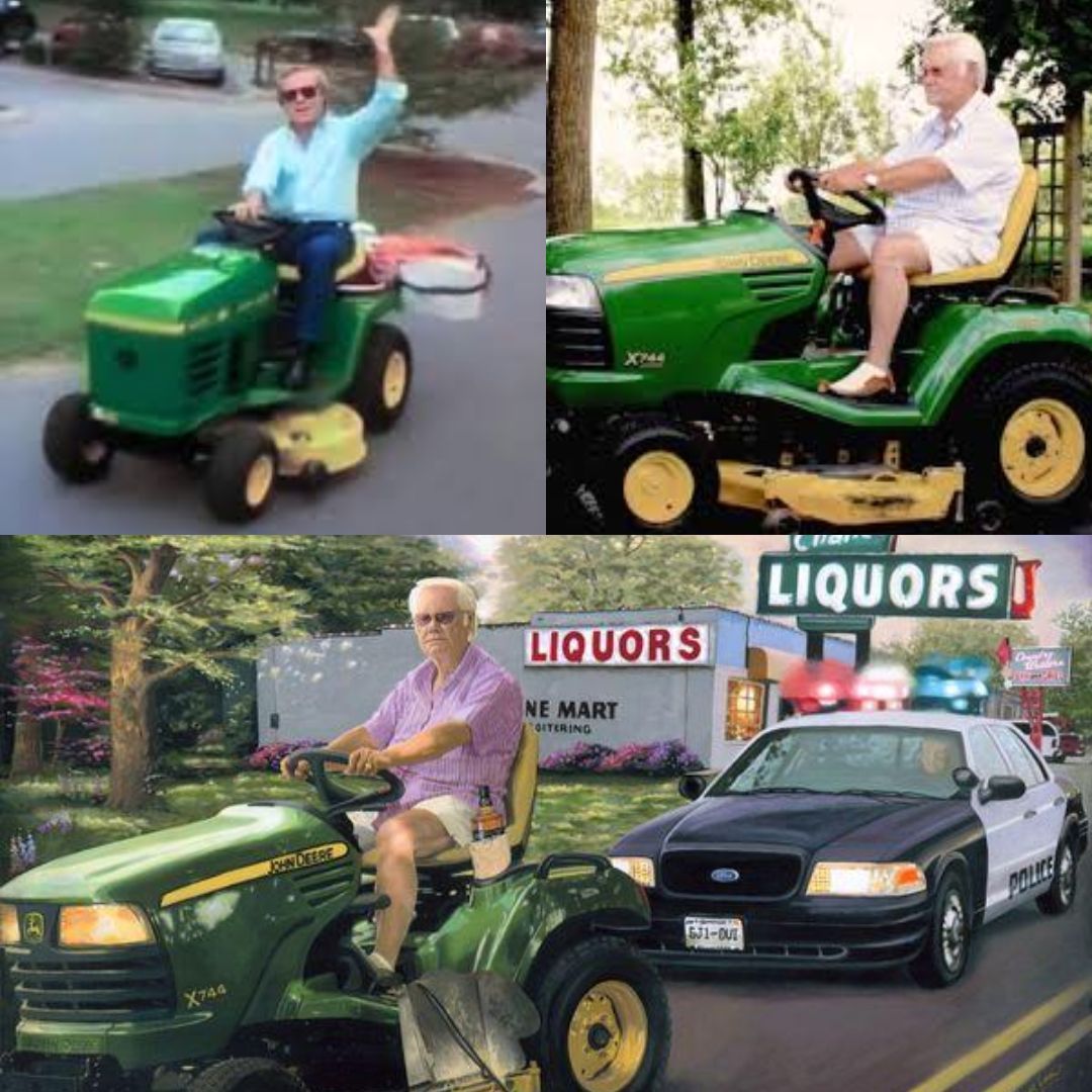 He cranked it up, the engine sputtering like it wasn’t sure it wanted to get involved in this mess. But once it caught, he eased down the driveway and pointed that lawnmower toward the highway. Imagine the scene: cars rushing past at full speed while a country legend rolls along at maybe 5 miles per hour, hair blowing back, jaw set, absolutely determined.